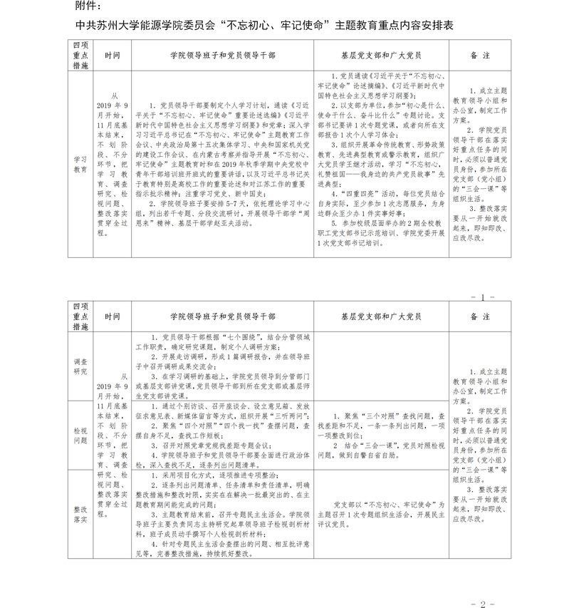 中共苏州大学经典三级 党委关于开展“不忘初心、牢记使命”主题教育的实施方案 苏大能源〔2019〕10号