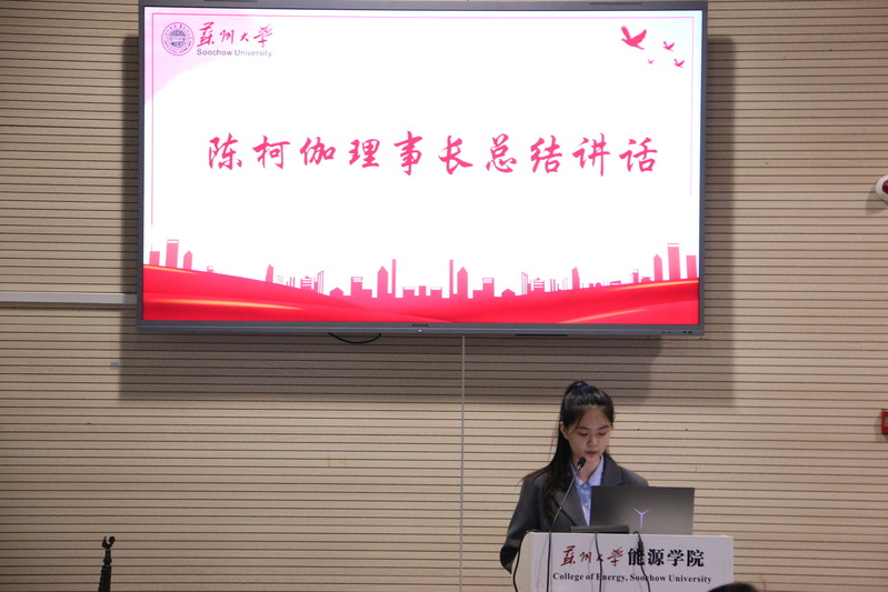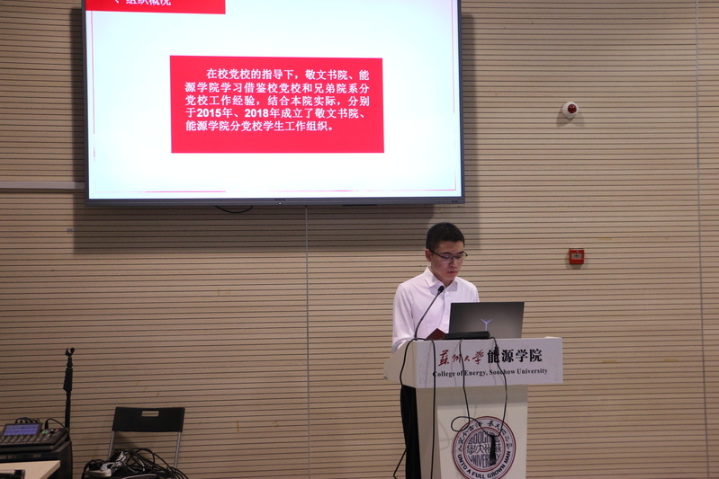 根据会议议程,敬文书院分党校学生工作组织理事长赵宸从组织概况、组织架构、工作内容、未来展望、特别鸣谢五个方面对本期分党校工作组织建设的整体情况与学员过程化教育的成果进行详细阐述,并对两院党委的亲切关怀和分党校指导老师的悉心指导及全体同学的积极参与表示感谢。